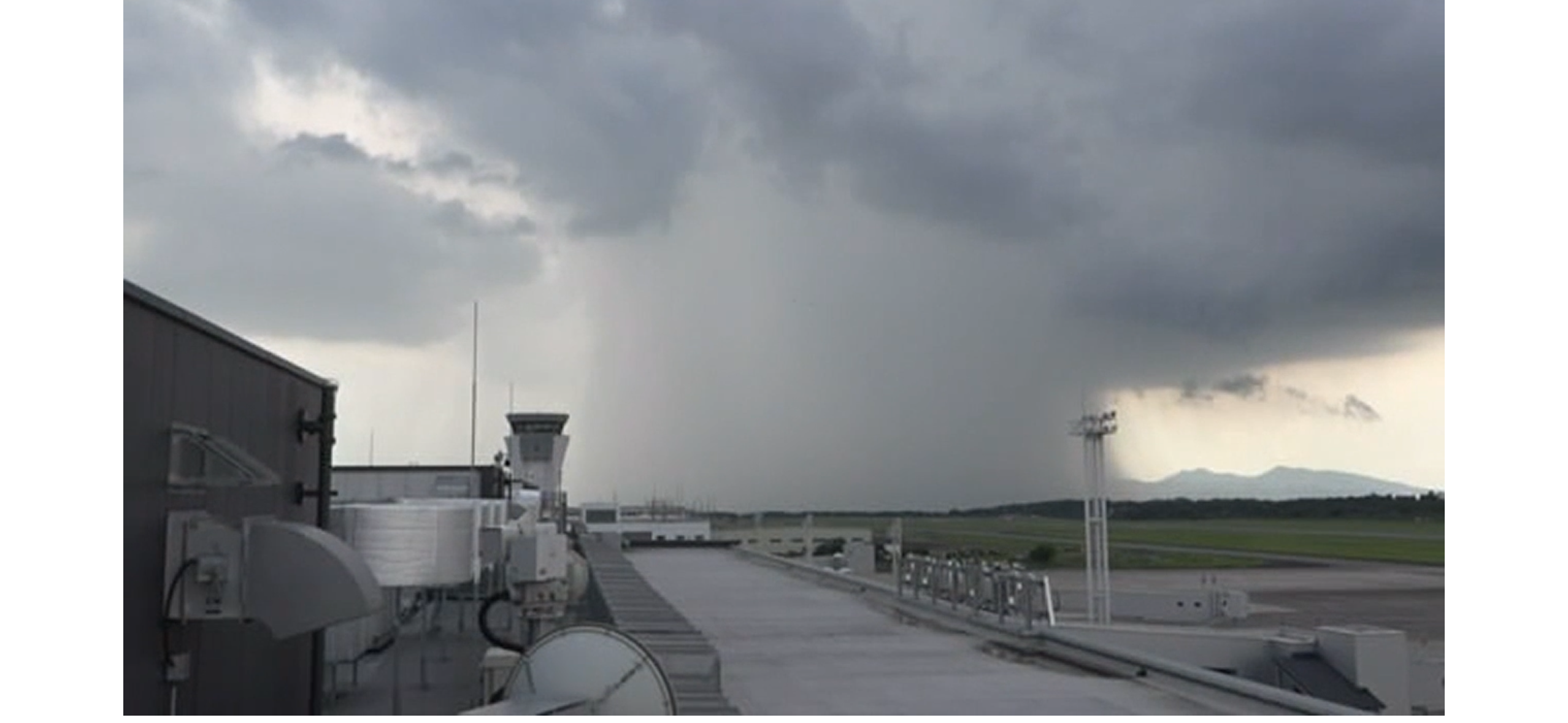 熊本空港の滑走路から西側に雨柱(東区だけ大雨)ネットニュースより