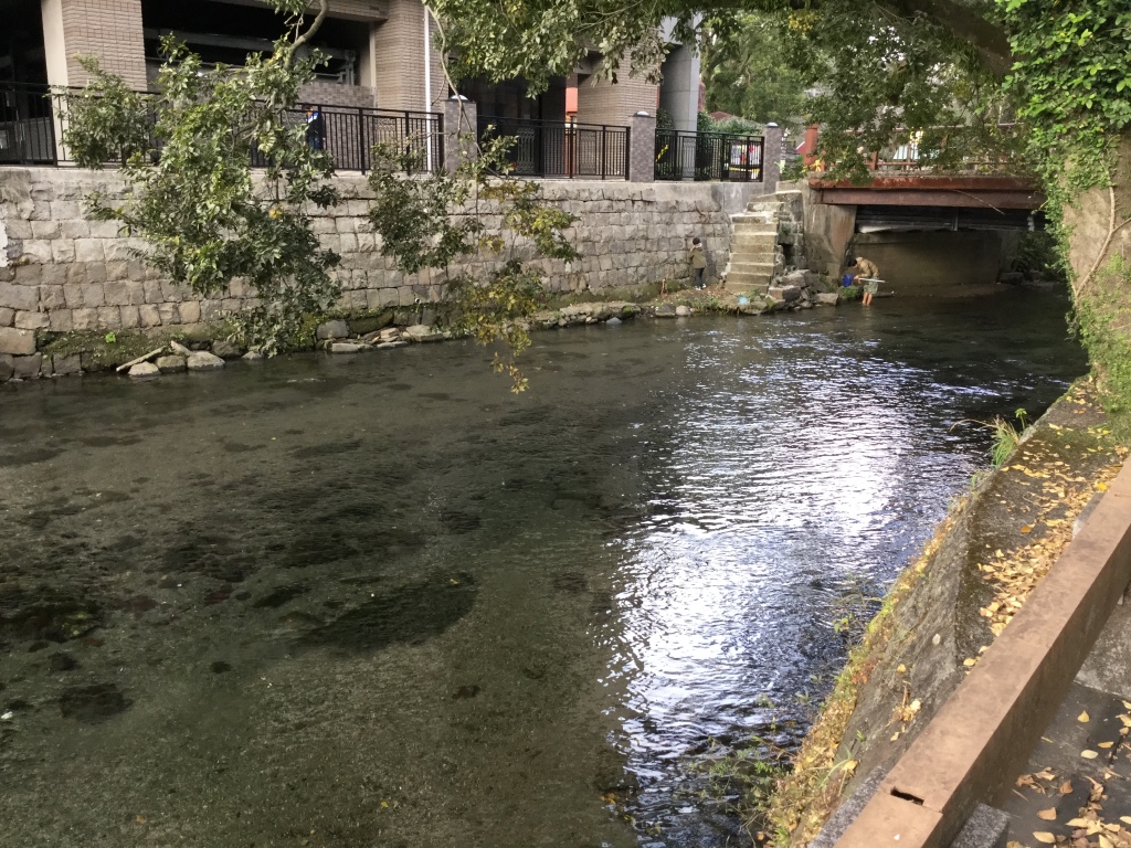これは上江津湖の上流です。県立図書館のすご横です。あまりに透明感があり、驚いたのと、この寒い中川遊びをしている子供がいるのにも驚きました。