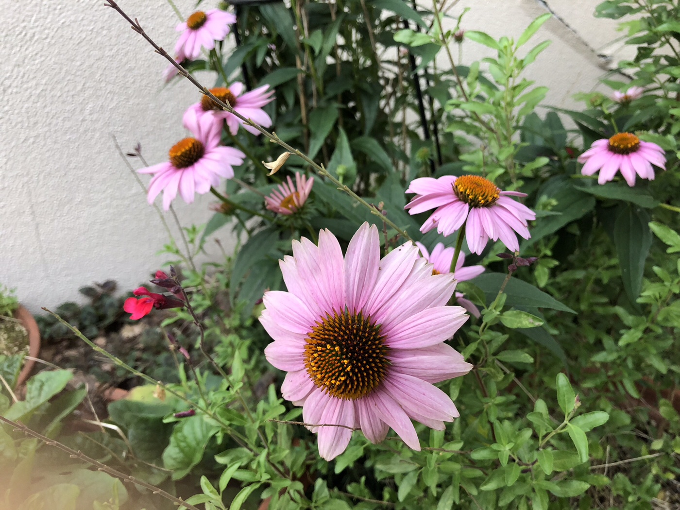 エキネシアという花です。アメリカインディアンはこの花の根を風邪薬に使っていました。アメリカンハーブです。