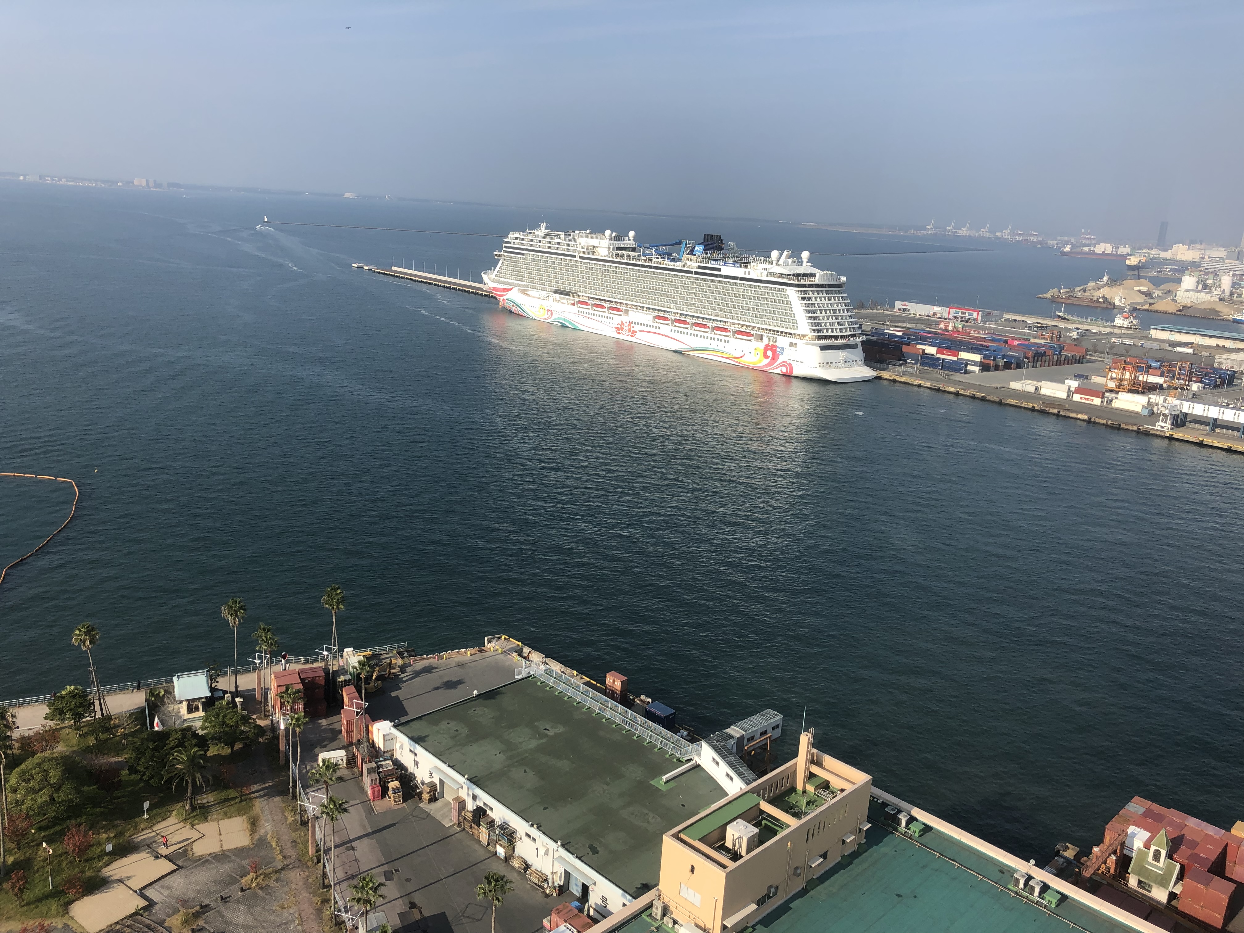博多マリンタワーよりみた巨大客船。 いちどは乗ってみたいものです