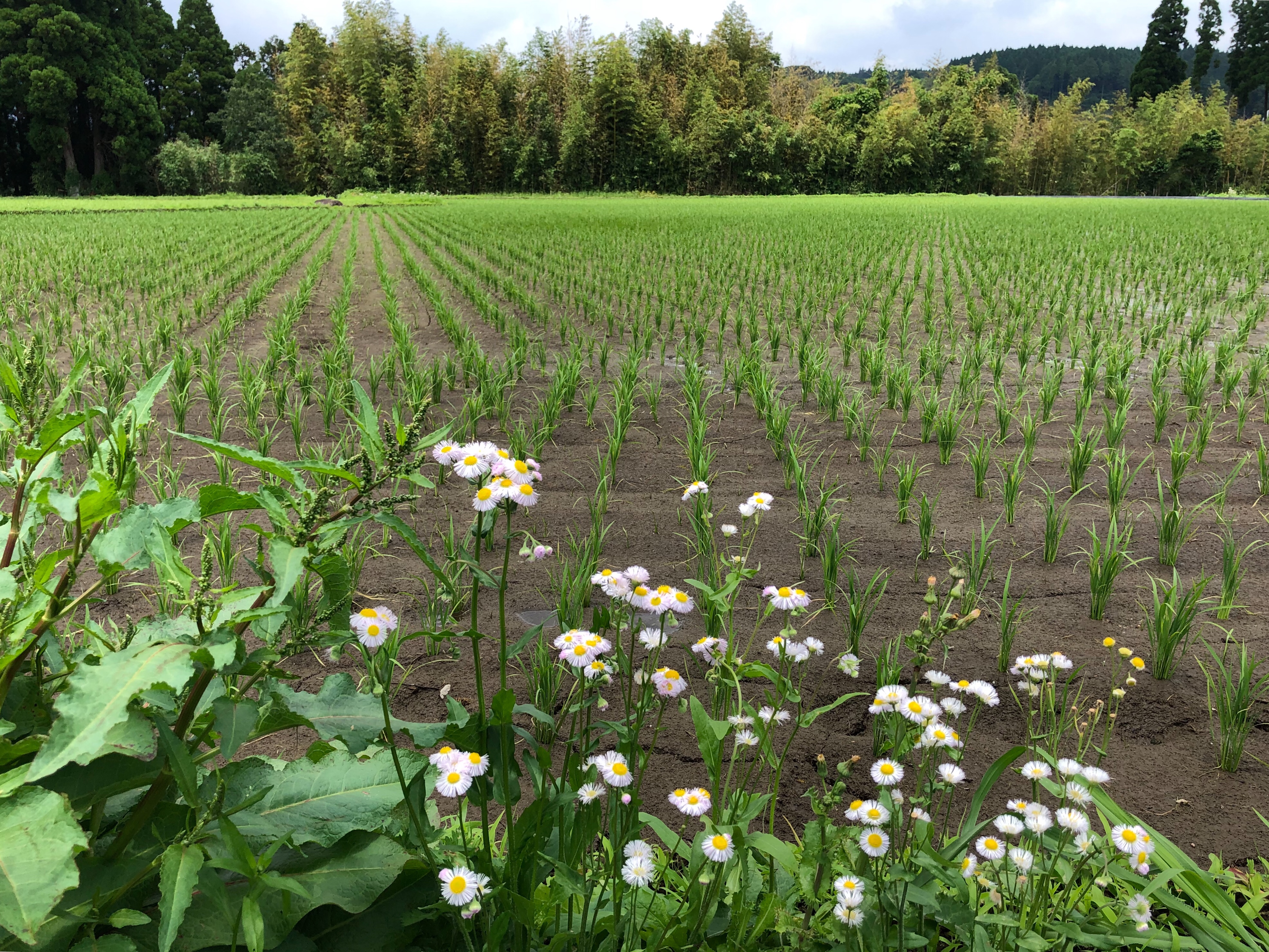 久木野。雨が降らないので田んぼに水がありませんが、もう作付けしないとタイムリミットでしょう。熊本市内は白川から井手を引いているので水は入っています。