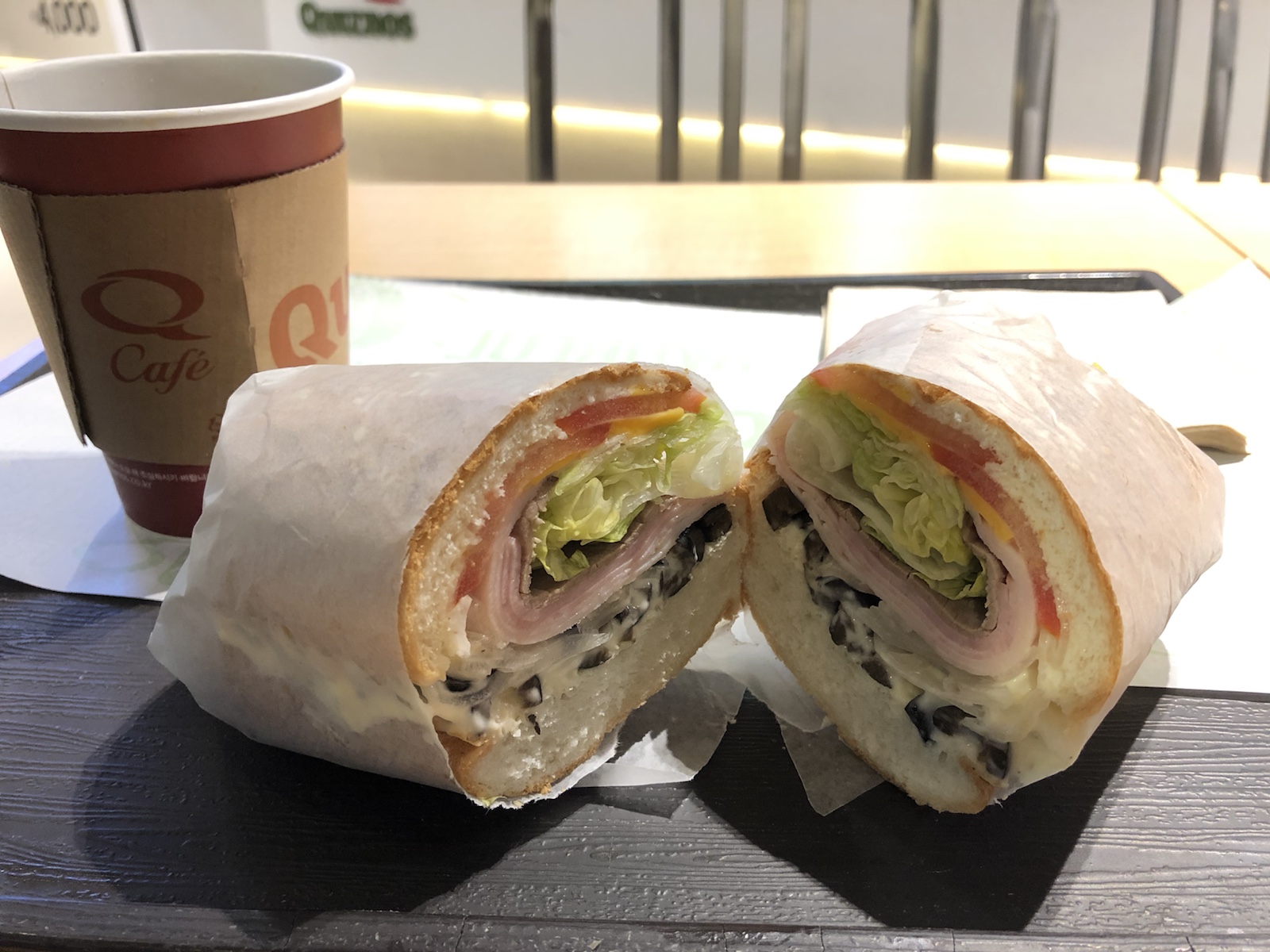 個人的にはアメリカで一番美味しいと思うサンドイッチチェーンのQuiznoが仁川(インチョン)空港内にありました。わたしにとってはテンション上がる食事!