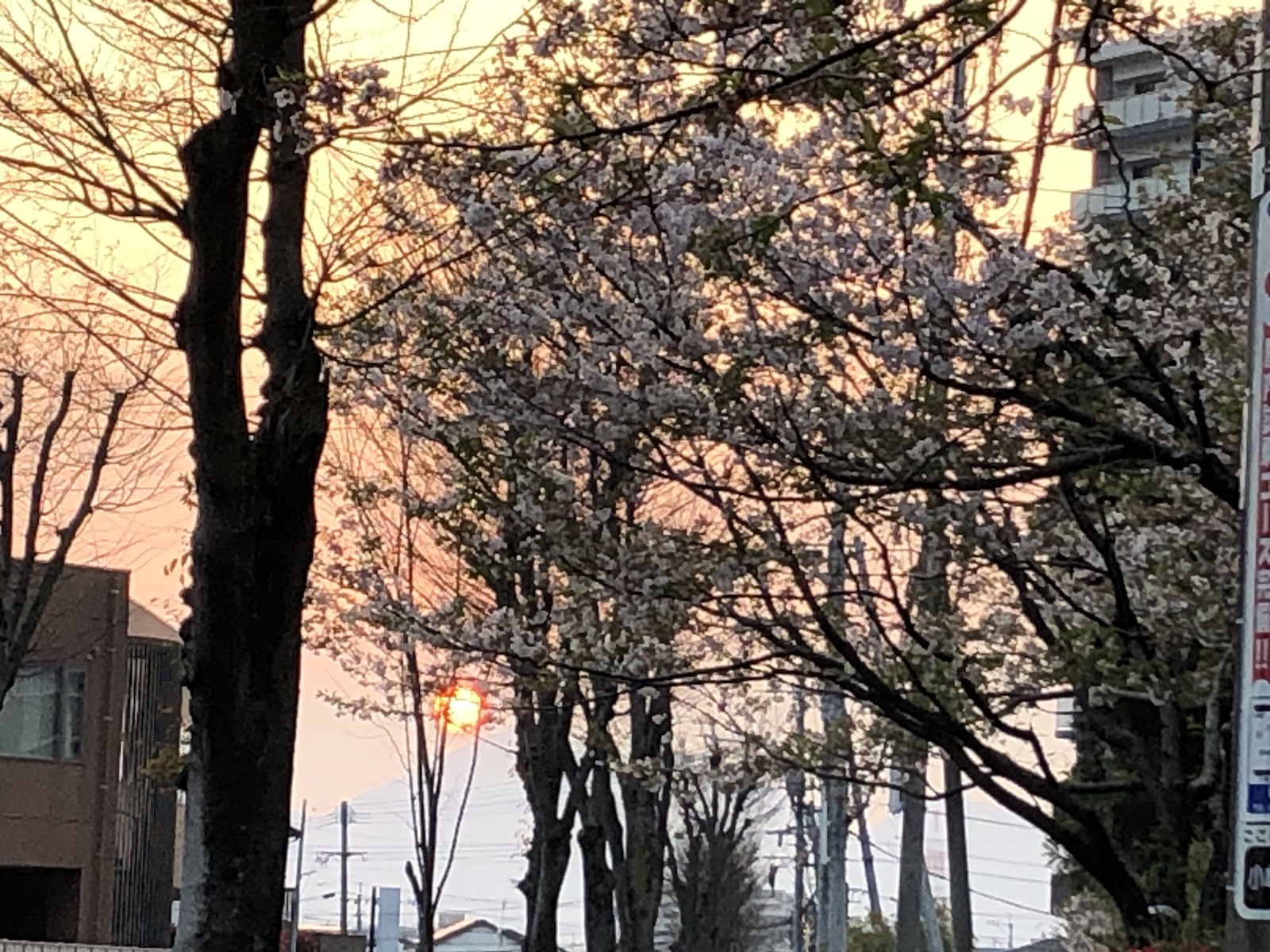 桜と夕日、夜はスーパームーンの素晴らしい満月でした