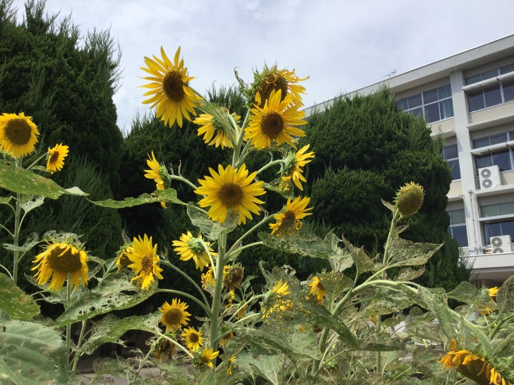 熊本高校の校舎前で