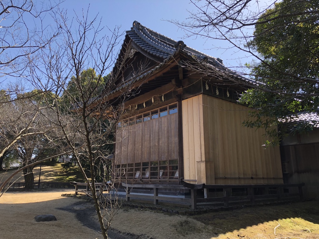 水前寺公園内。この建物の名前を忘れましたが、神楽か何かするところだったと思います。熊本地震で全壊したとばかり思い込んでいましたが手前の壁が新しい建材で補強されている程度で無事だったんだと、見ていて嬉しくなりました。