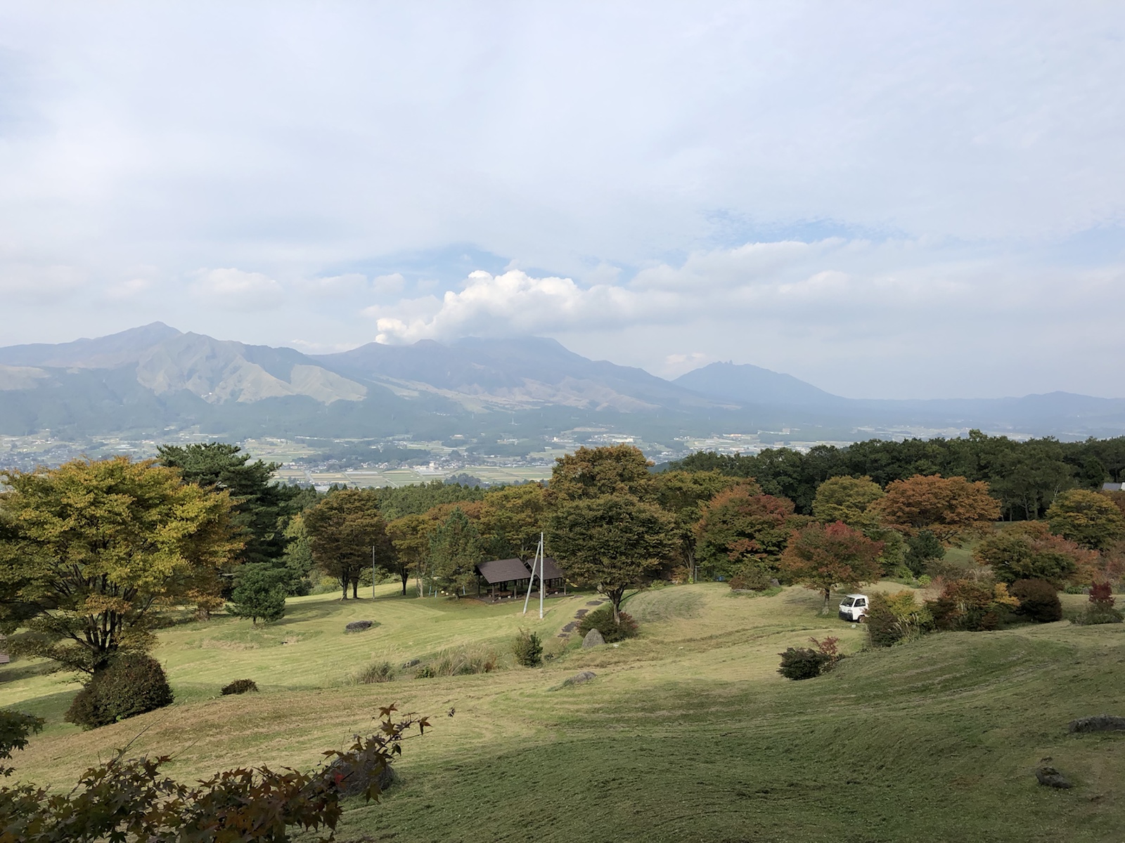 阿蘇の噴煙は根子岳方向へ ホテルグリンピア南阿蘇より