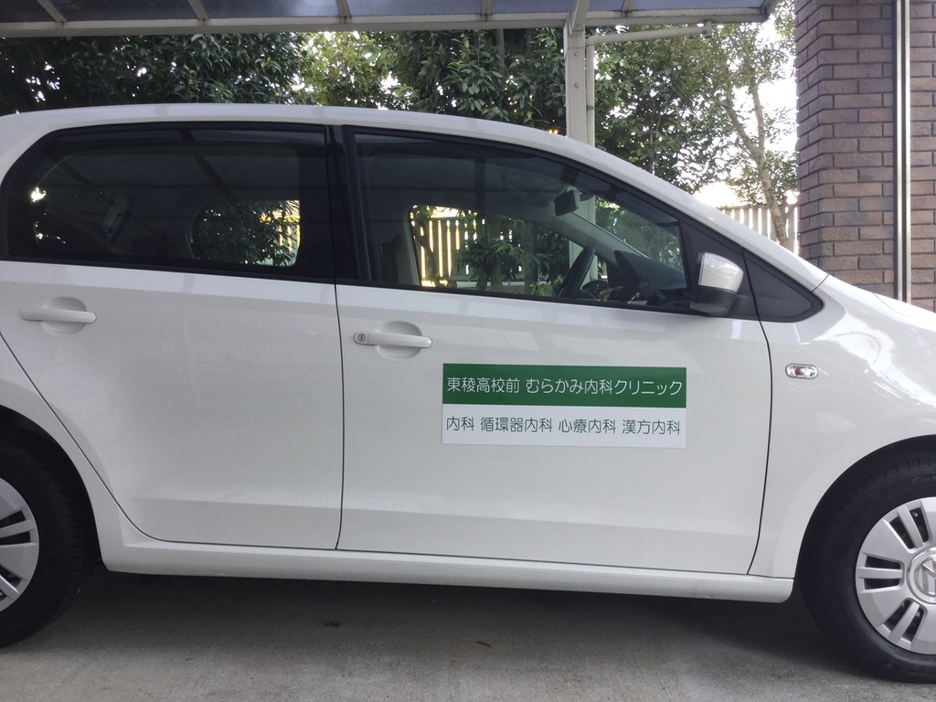 いよいよ往診車にもクリニック名を入れたマグネットができました。これを貼って走る時は、いつもにもまして運転マナーを守り、安全運転しないといけません。気が引き締まります。
