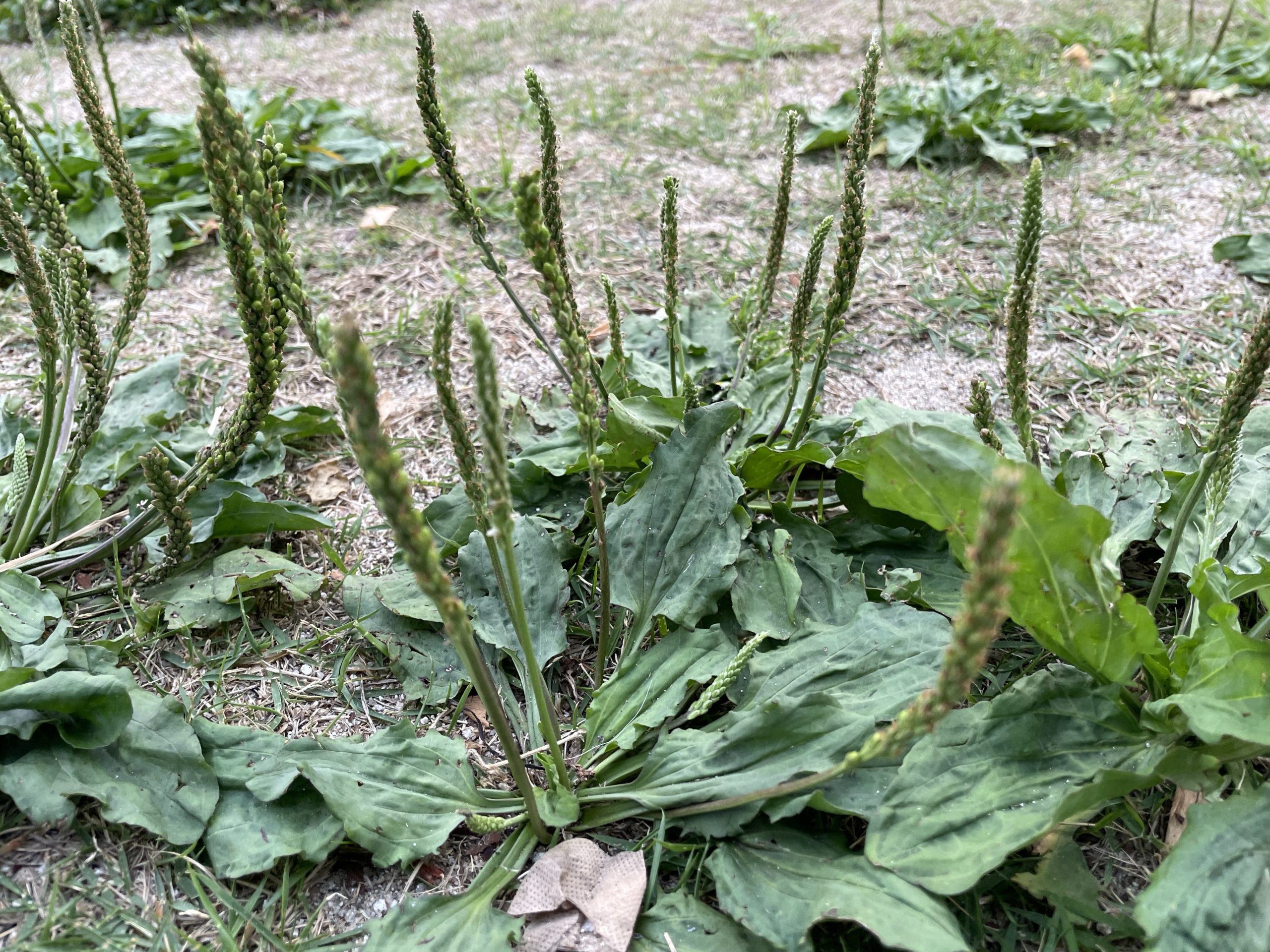 公園に生えていたオオバコ。上に伸びた穂に種がなります。その種は車前子という漢方になります。牛車腎気丸に入っています。