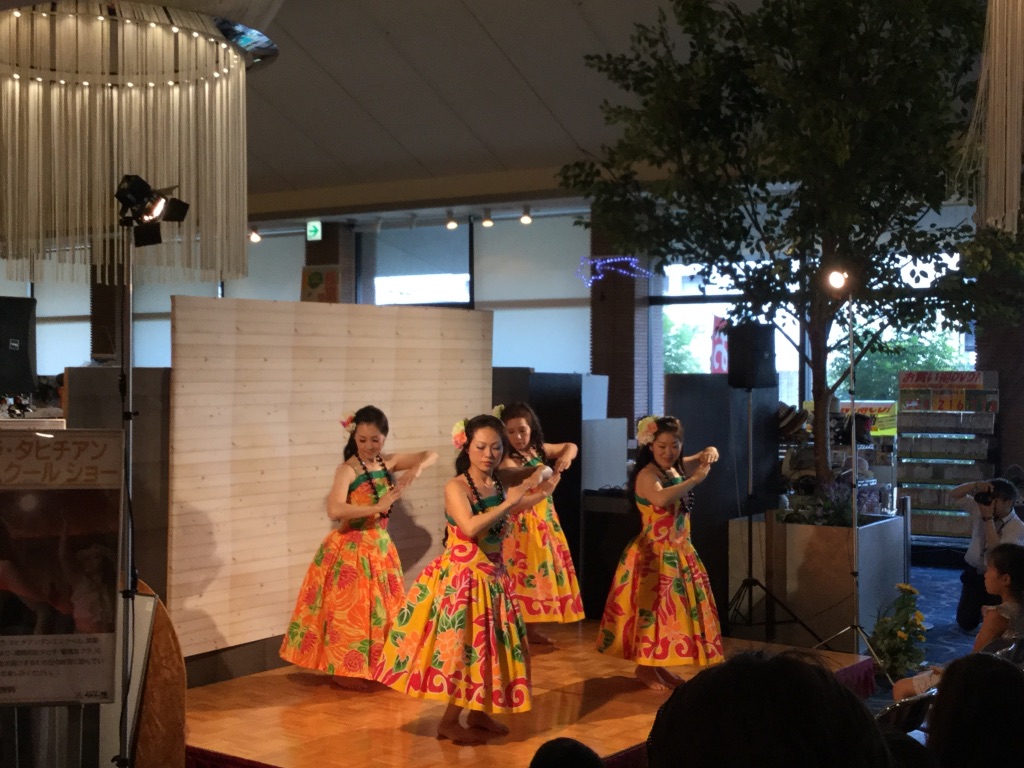 玉名温泉つかさの湯にて。たまたまフラのショーをやっていました。