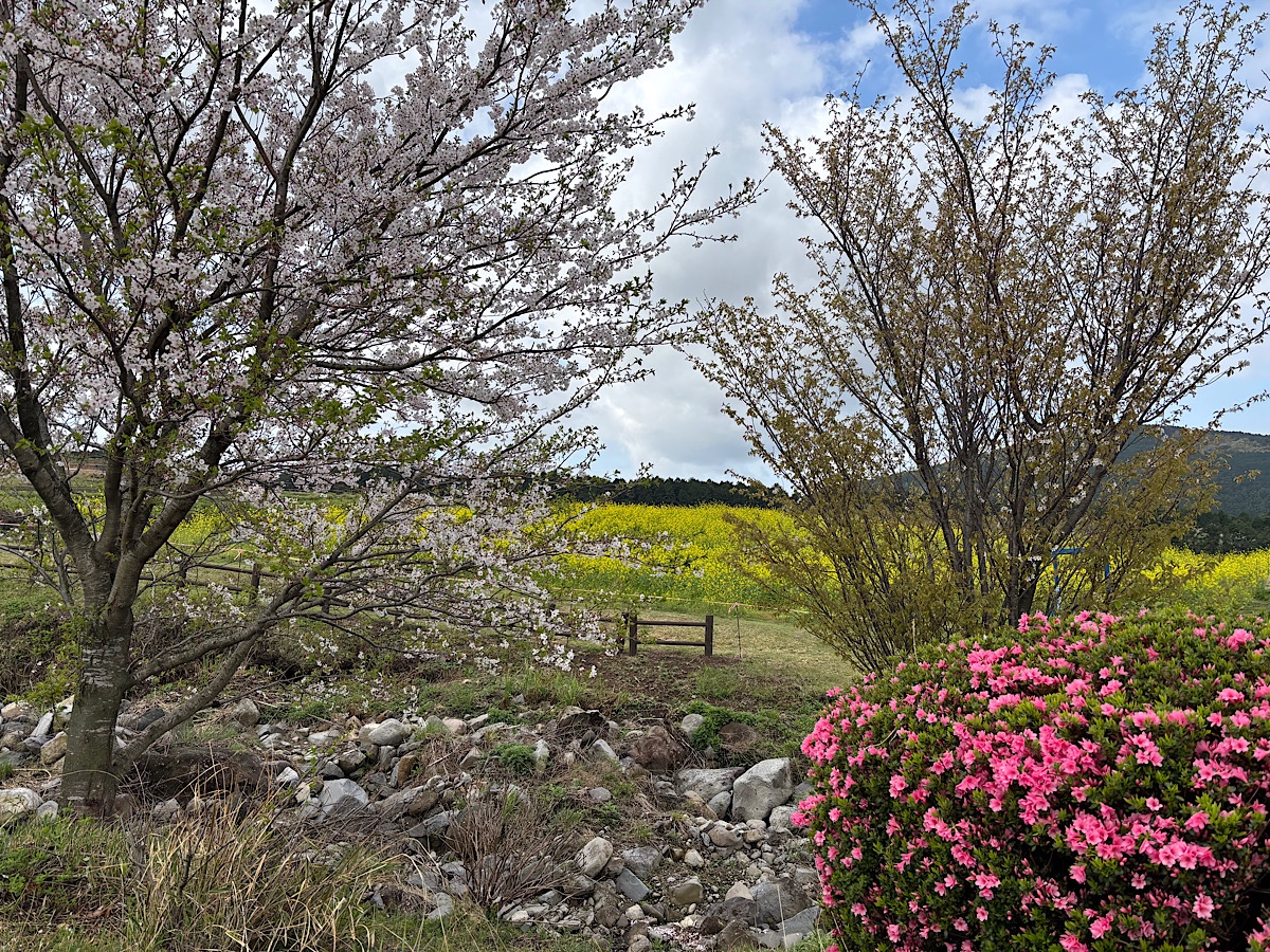 萌の里の春爛漫 桜とツツジと菜の花